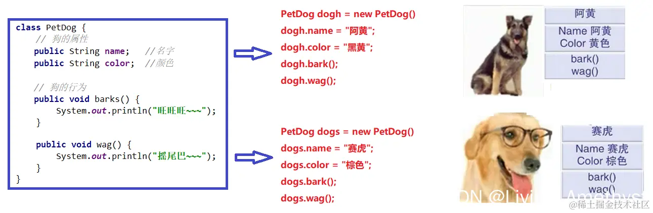 这就是一个实例化的过程,dogs就是对象