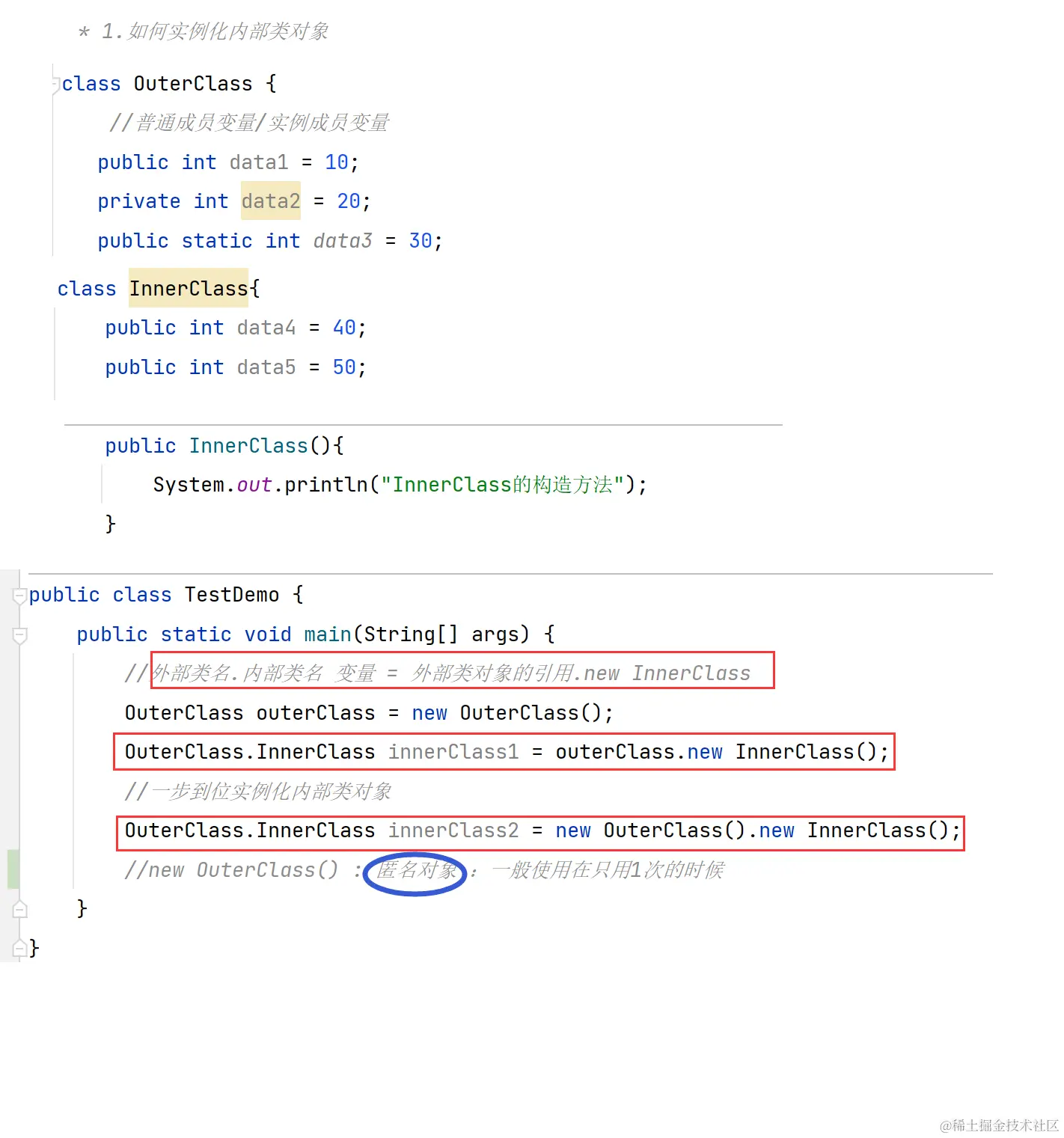 OutClass.InnerClass innerClass2 = outClass.new InnerClass();