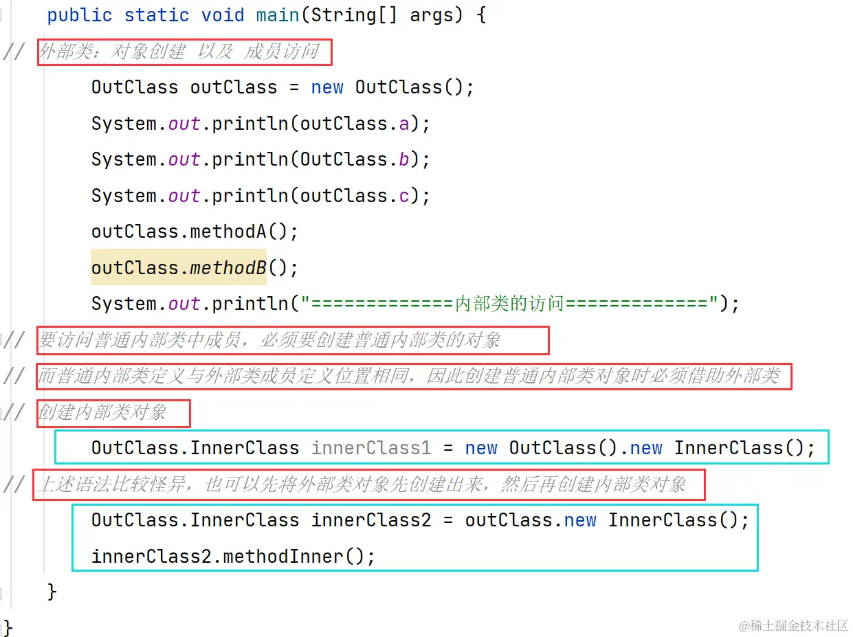 // 而普通内部类定义与外部类成员定义位置相同,因此创建普通内部类对象时必须借助外部类