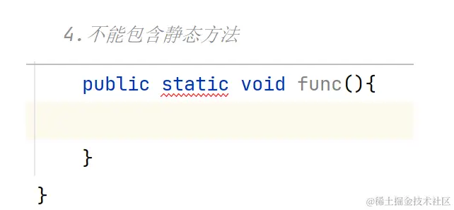 // 不能被public、static等访问限定符修饰