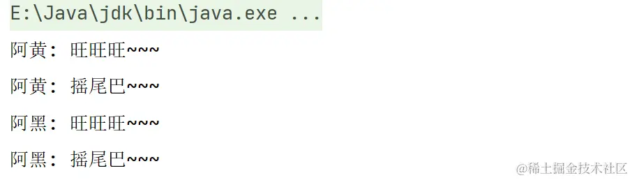 System.out.println(name + ": 摇尾巴~~~");