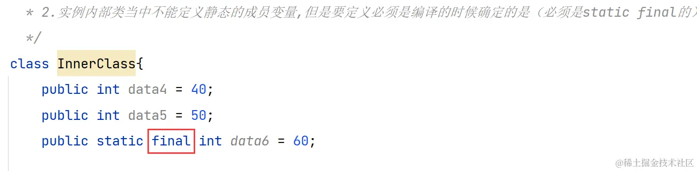 // 在内部类中只能访问外部类的静态成员