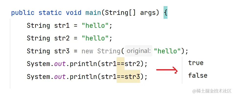// 对于基本类型变量,==比较两个变量中存储的值是否相同