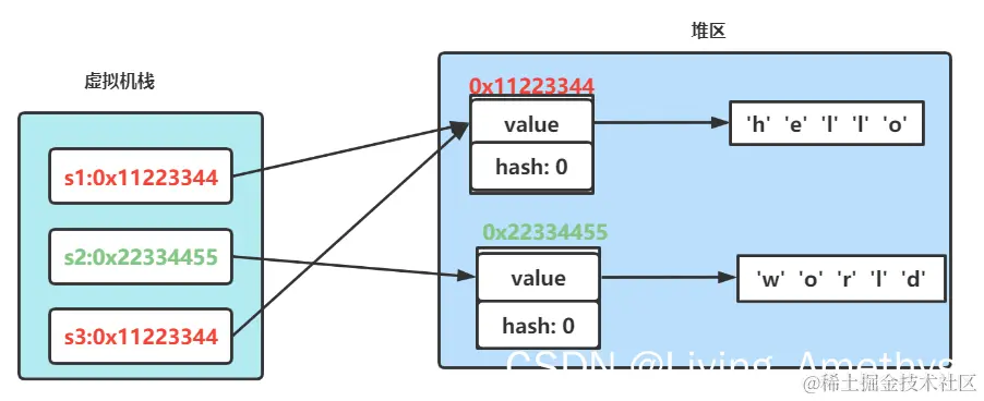 // s1和s2引用的是不同对象 s1和s3引用的是同一对象