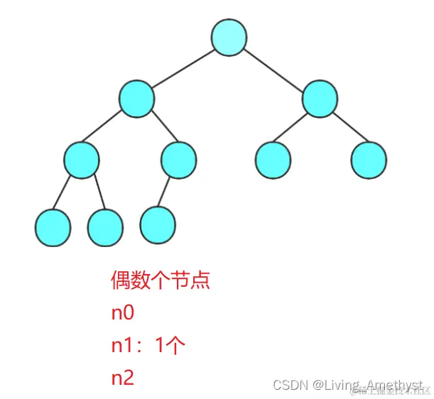 - 这道题中,结点个数为2n,是偶数,所以 n1=1