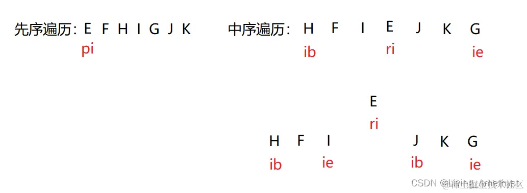 - 在中序遍历的 ib到 ie,找到 ri 这个的下标位置