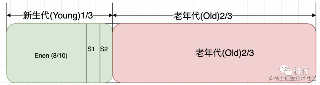 //survivor区和Eden区大小比率 指令:-XX:SurvivorRatio=6 //S区和Eden区占新生代比率为1:6,两个S区2:6 //新生代和老年代的占比 -XX:NewRatio=4 //表示新生代:老年代 = 1:4 即老年代占整个堆的4/5;默认值=2