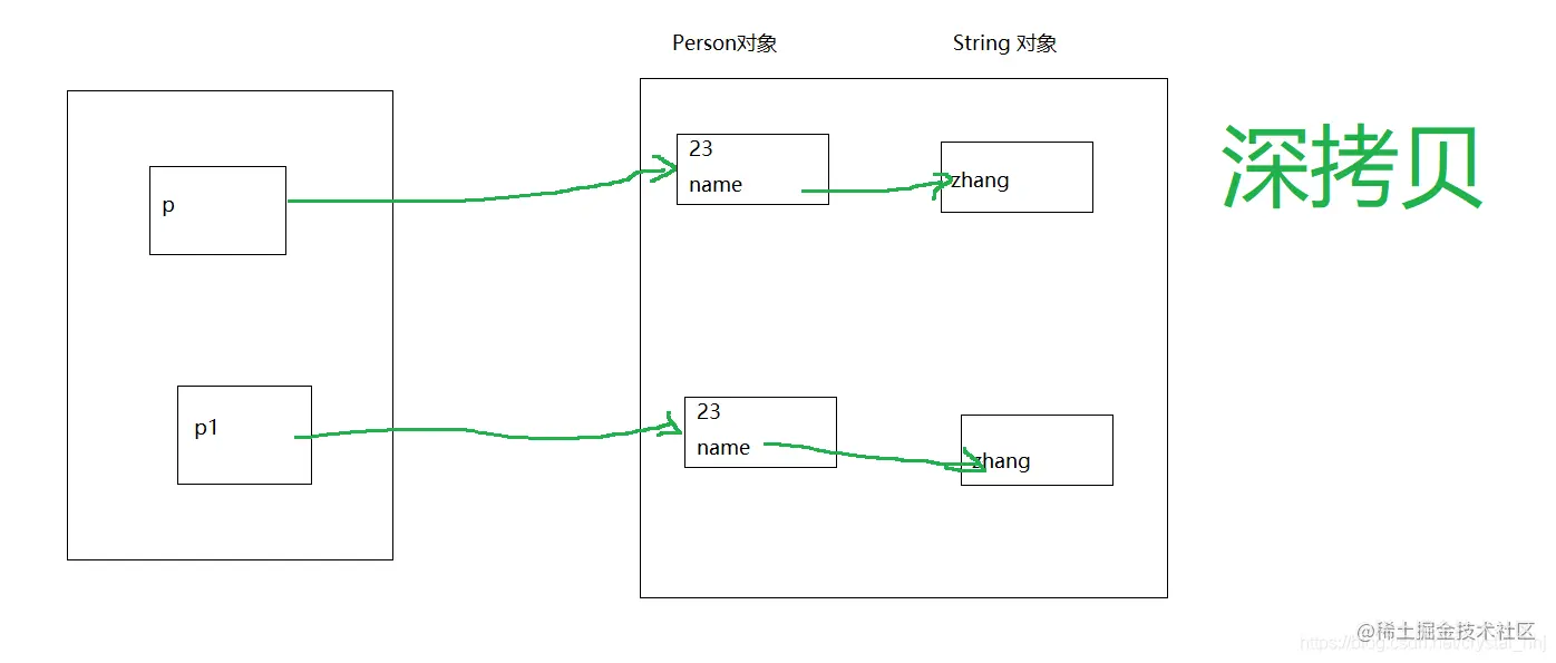 深复制:在计算机中开辟一块新的内存地址用于存放复制的对象。