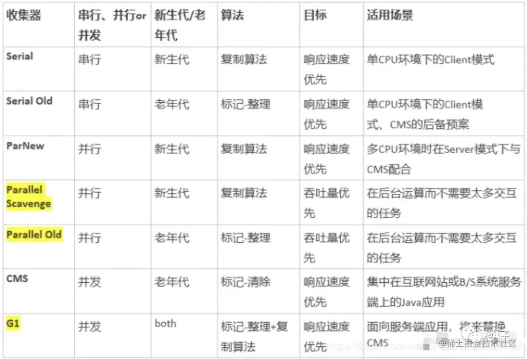 - 新生代回收器:Serial、ParNew、Parallel Scavenge