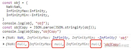 console.log(objCopy,"objCopy") // {NaN: null, InfinityMax: null, InfinityMin: null} 'objCopy'