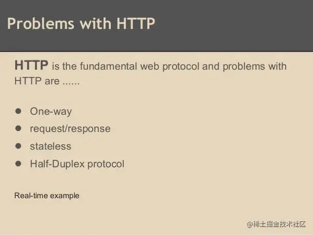 举例来说,我们想了解查询今天的实时数据,只能是客户端向服务器发出请求,服务器返回查询结果。HTTP 协议做不到服务器主动向客户端推送信息。