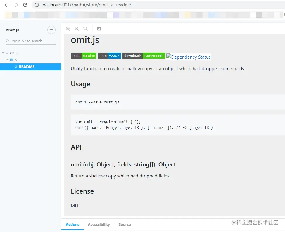 如上图所示,使用Object.assign将obj的属性复制给obj2, 其中obj的属性c是数组,属于引用类型的数据。当修改obj时,我们发现obj2的c属性也发生变化了。所以Object.assign()方法是一个对象的浅拷贝方法。omit的源码可以说非常简单,但是package.json中的一些npm包还是挺有学习价值的,我们来简单了解一下: