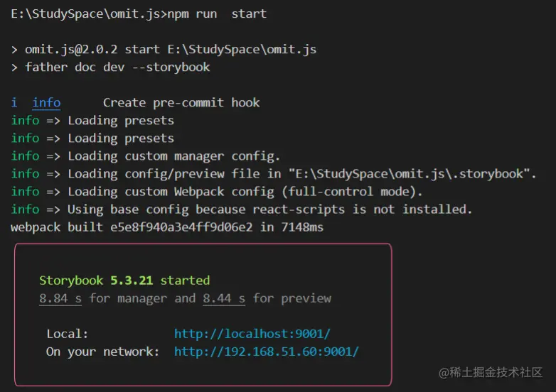 能够看到father又能打包编译又能生成文档,下图是执行run start命令的执行结果: