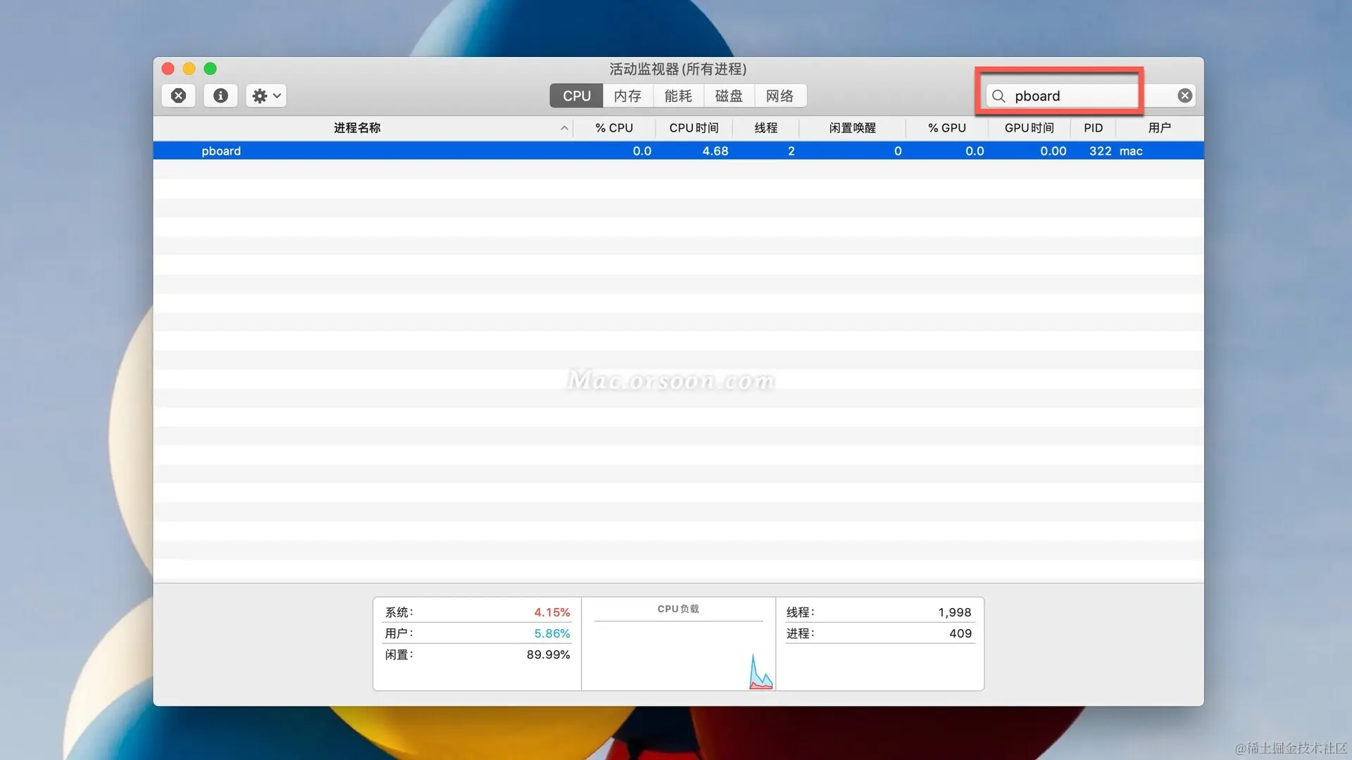 - 启动活动监视器
