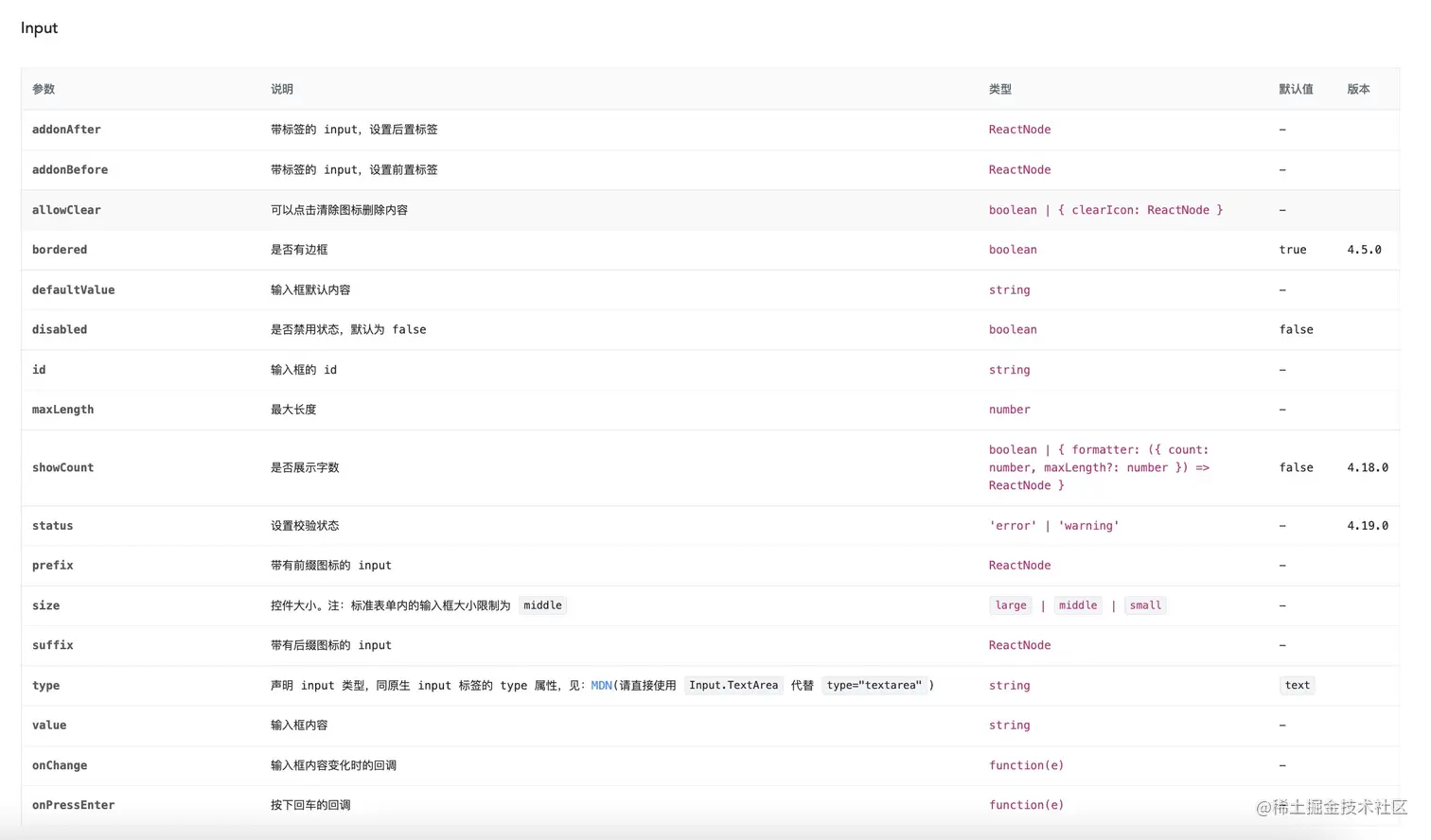 如图为Antd的Input输入框组件「平平无奇」的参数: