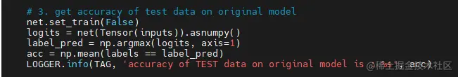 测试模型,获取测试数据集,并且计算测试数据集在原模型上的准确率