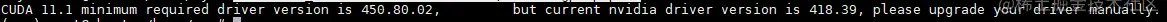 CUDA 11.1 minimum required driver version is 450.80.02, but current nvidia driver version is 418.39, please upgrade your driver manually.