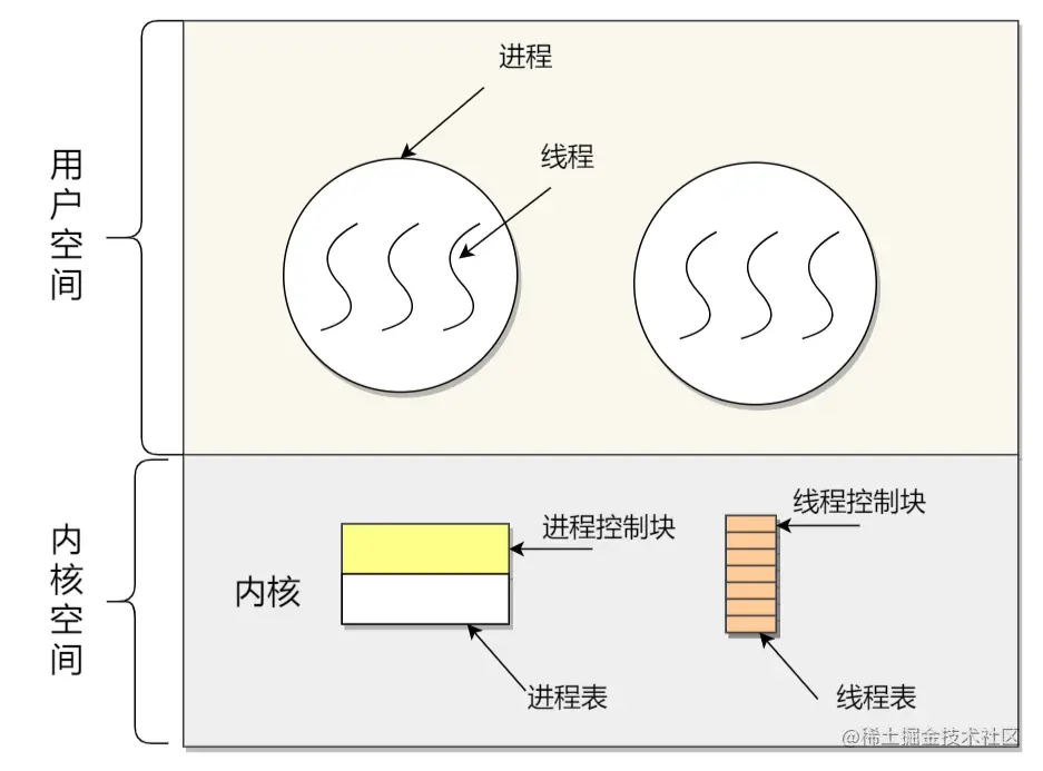 - 在支持内核线程的操作系统中,由内核来维护进程和线程的上下文信息,如 PCB 和 TCB;