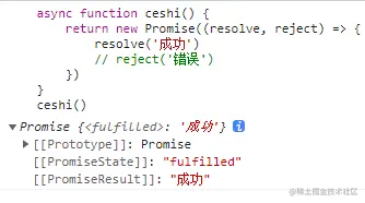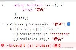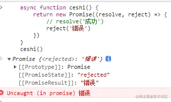3.如果 throw Errow 抛出异常,则 async 函数返回 promise 的状态为 rejected 失败