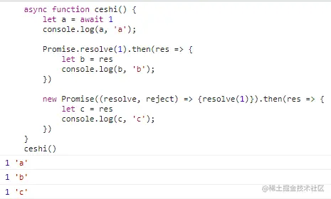 async/await 让异步代码看起来、表现起来更像同步代码,必须等上一个await走完,下一个await才开始走,像同步的效果