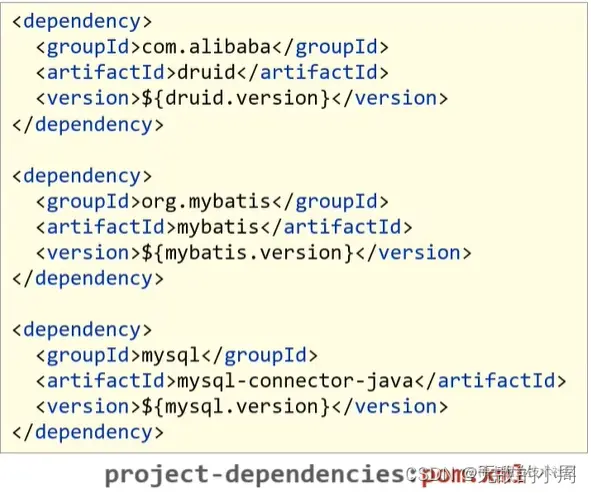 当通过start.spring.io创建springboot工程时,pom文件中有一个parent标签,在parent中坐标中的pom文件,就起到了管理依赖版本的功能,当你在pom文件中引入新的依赖,就不用去定义版本了。但为什么在引入版本时连引用版本号的表达式也没有呢?因为在dependencyManagement定义了版本引用信息。