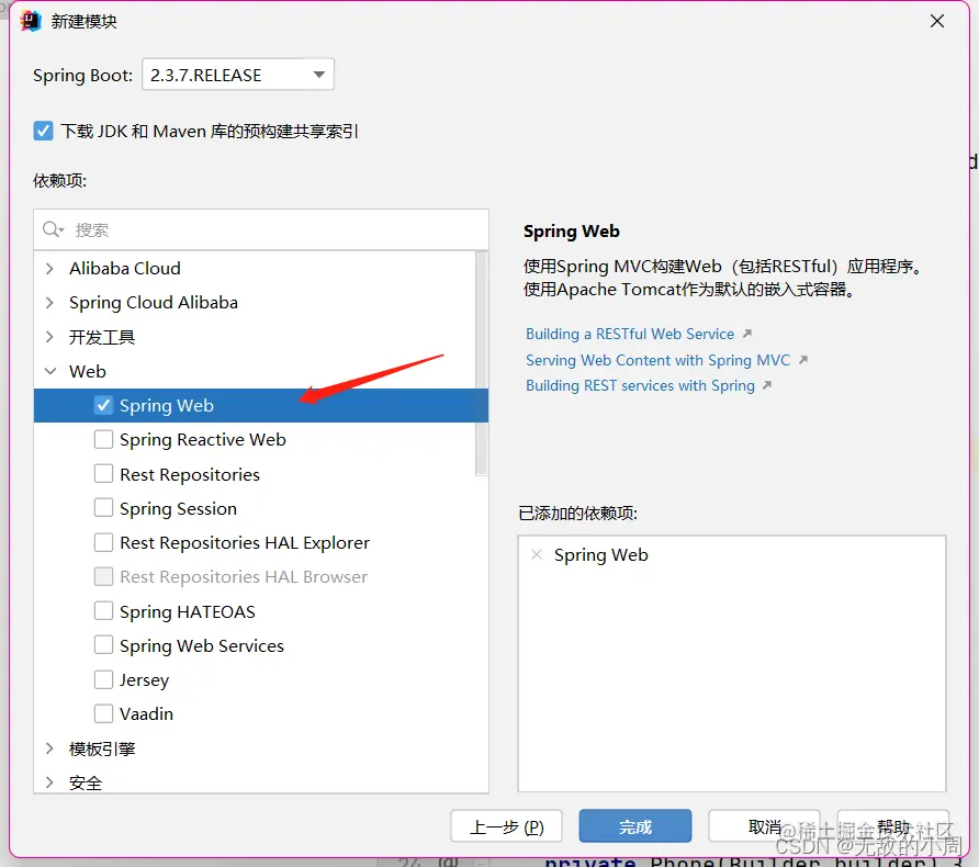 在starter-web中有starter-tomcat,将tomcat以对象的形式在spring容器中运行起来。