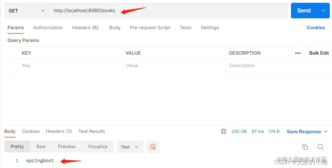 @RestController @RequestMapping("/books") public class BookController { @GetMapping public String getById(){ System.out.println("springboot is running"); return "springboot"; } }