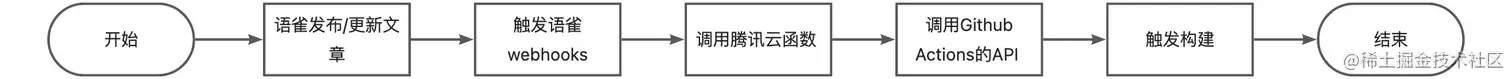 在之前的文章语雀云端写作 Hexo+Github Actions+COS 持续集成 中,语雀webhook触发构建的流程如下: