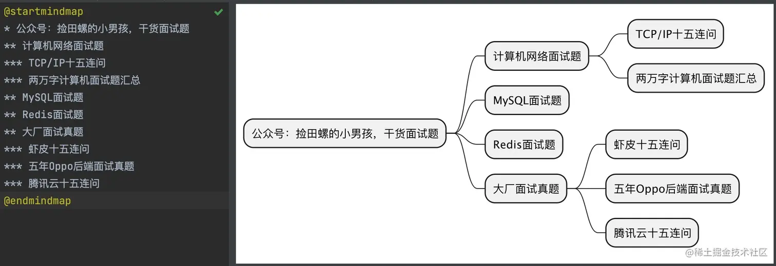 plantUML画思维导图,还是挺简单的,大家可以看下效果
