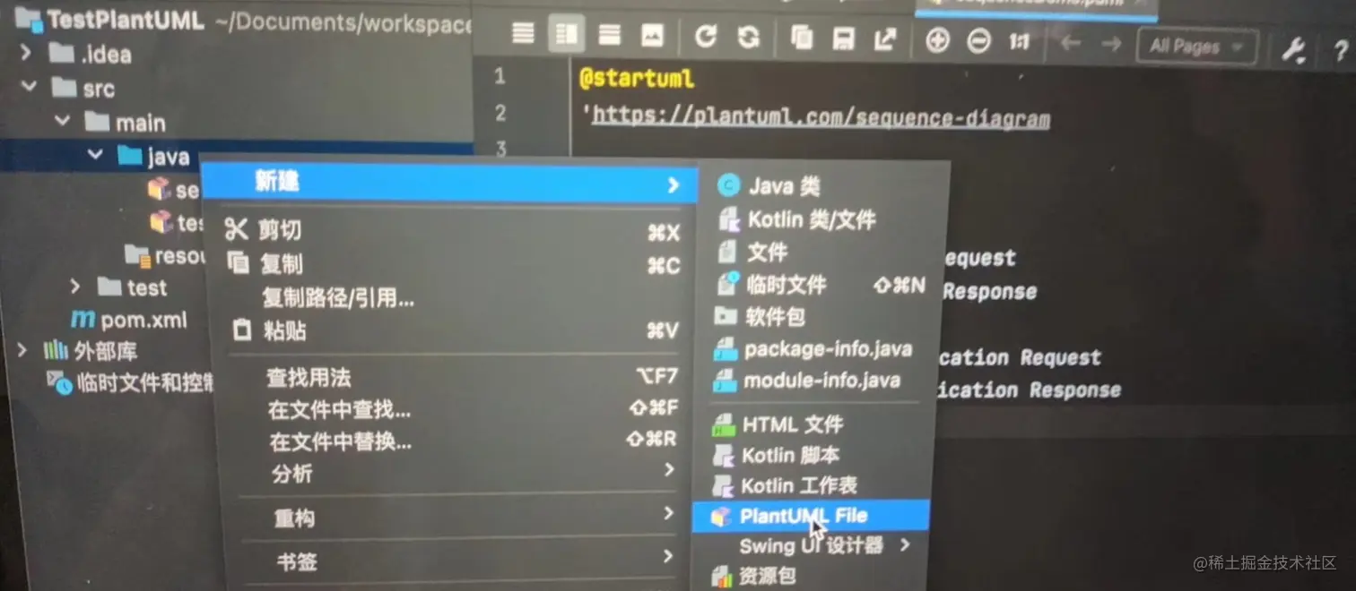 安装成功后,想快速体验一般的话.可以新建一个项目,然后新建一个plantUML File文件,然后把我上个小节,登录时序图那个代码复制进去,就可以看到登录时序图啦.