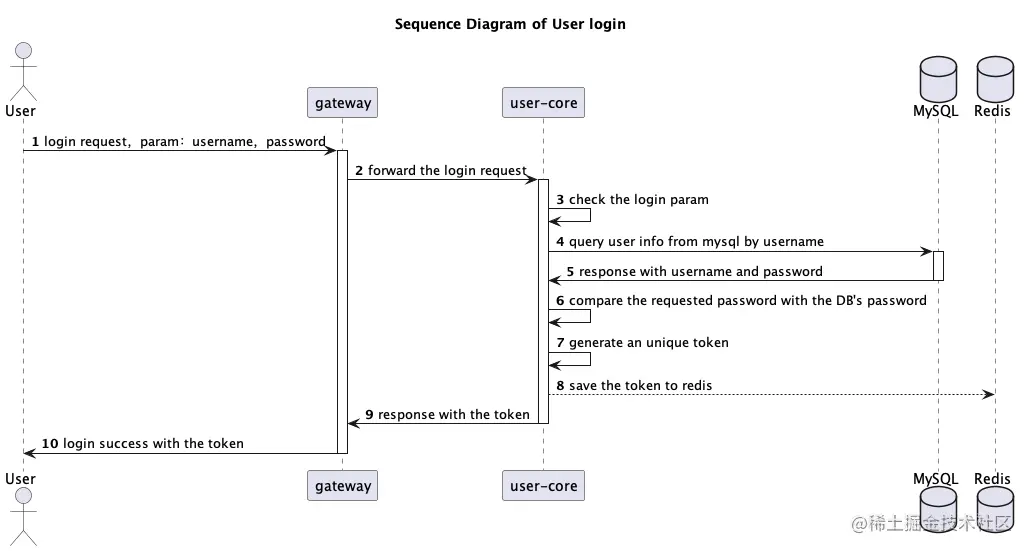 PlantUML 画出来的图,简洁美观,先给大家看看,一个用PlantUML画出来的登录时序图,以及对应画图的代码,如下: