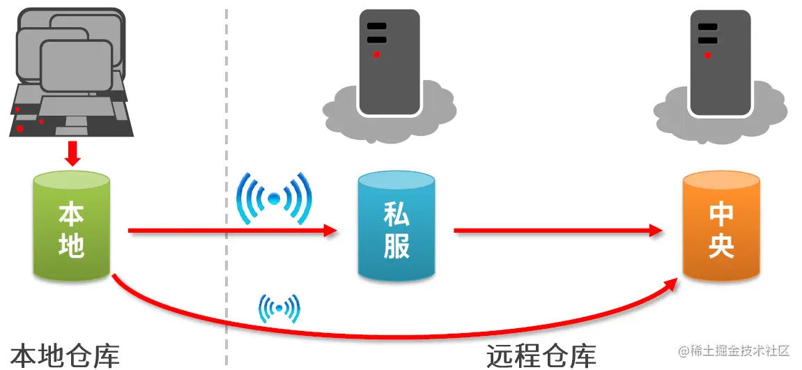 关于仓库,前面讲到了有三种:本地仓库,私服,中央仓库,其中私服和中央仓库都属于远程仓库