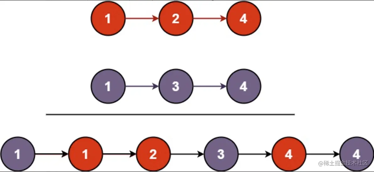 将两个升序链表合并为一个新的 升序 链表并返回。新链表是通过拼接给定的两个链表的所有节点组成的。
