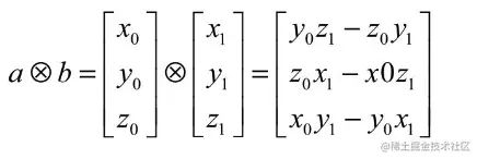 向量叉乘比较特别,只能使用3D向量,现在假设有两个3D向量 a=[x0,y0, z0]和b=[x1, y1, z1],那么