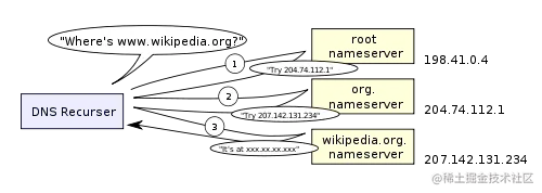 这是一个比较历史悠久的科普知识了:当你敲下 www.google.com(类似于 www.baidu.com)会发生什么呢?它包含了如何识别键入信息、解析 url、检查 HSTS 列表、DNS 查找等等在内的 20+ 个过程。配图是 DNS 查找。