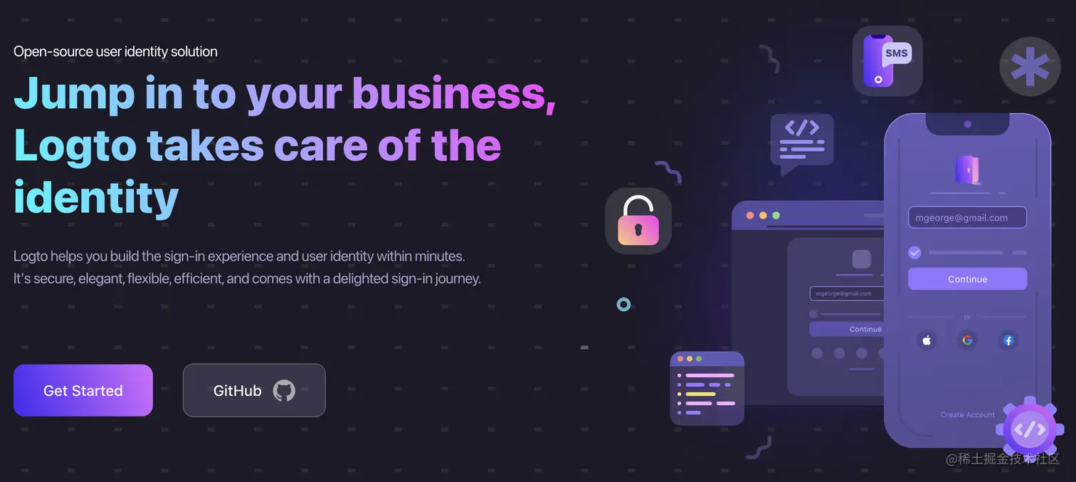 Logto 一个验证工具,在几分钟内即可构建集登录、身份验证和用户身份为一体的系统。它提供基于 OIDC 的身份认证服务和包含用户名、电话、邮件和社交登录方式的终端体验,并且提供多语言支持。特性: