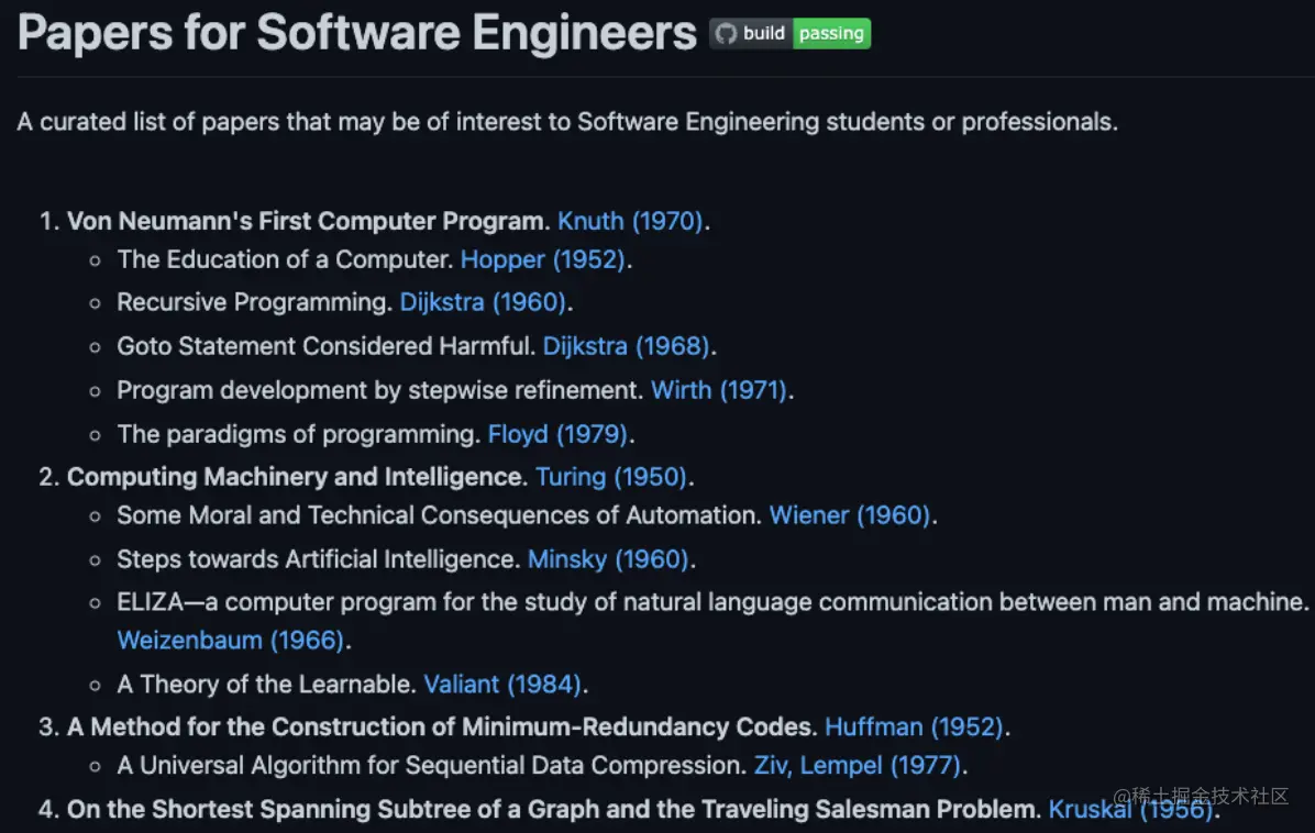 software-papers 收录了大量软件工程相关的论坛,从计算机起源到函数式编程,一起通过阅读论文来了解软件工程吧。