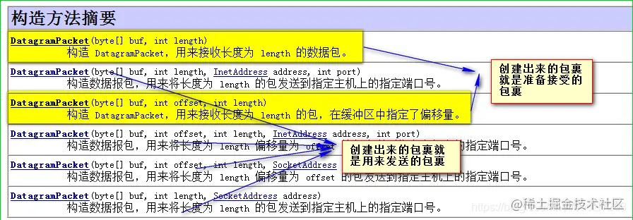 * DatagramPacket:需要创建的是用来发送数据的包裹