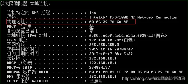 在dos窗口中输入 ipconfig /all 可以查询ip(mac地址)相关的详细信息
