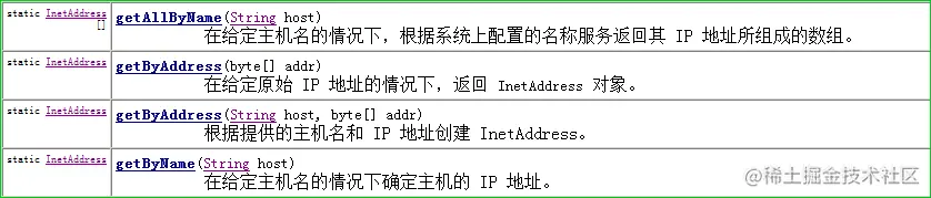 InetAddress类没有对外提供构造函数,其中提供静态的方法可以根据指定的主机(域名)找到对应的IP,然后把IP封装成InetAddress对象。