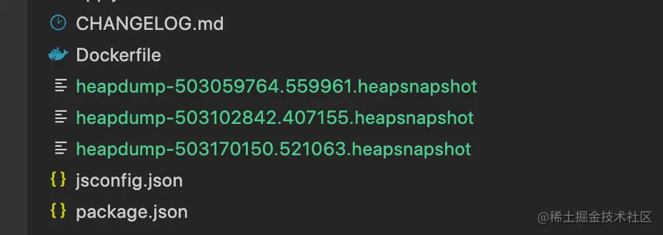 注意: 打印堆快照,前后对比时,记得使用一下应用,方便查看内存使用的区别。在打堆快照时,一开始只简单的等待一段时间后重新打印,结果不是很明显。可以用工具重复多次调用应用的接口,或者定位有疑问的页面刷新。