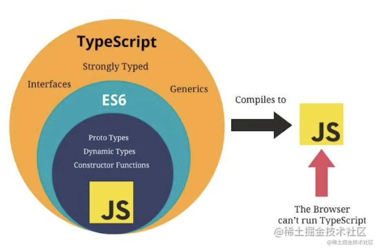 TypeScript 是 JavaScript 的一个超集,主要提供了类型系统和对 ES6+ 的支持**,它由 Microsoft 开发,代码开源于 GitHub 上