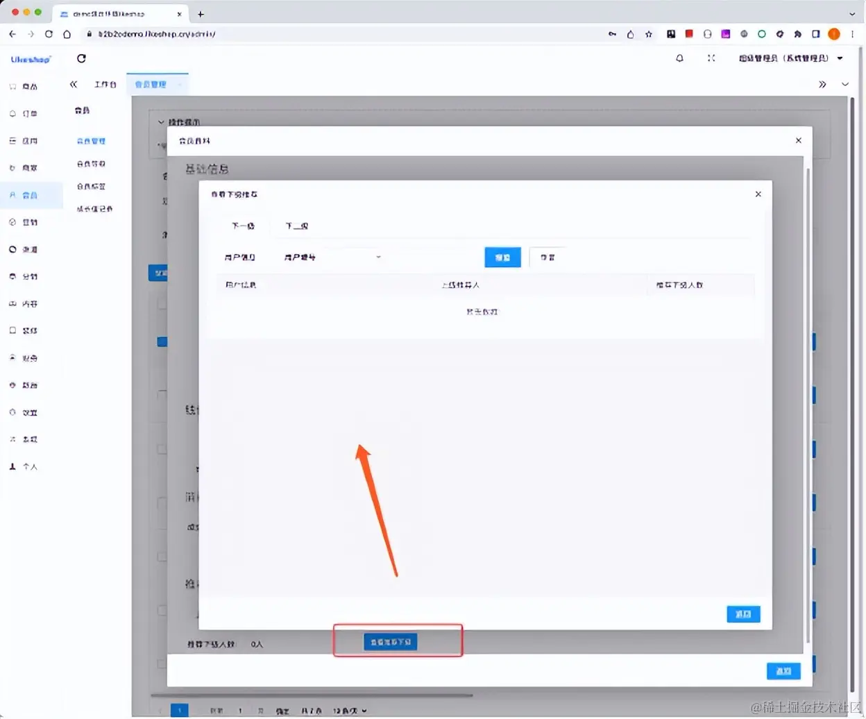 (多商户商城系统-平台端会员管理-查看推荐下级)