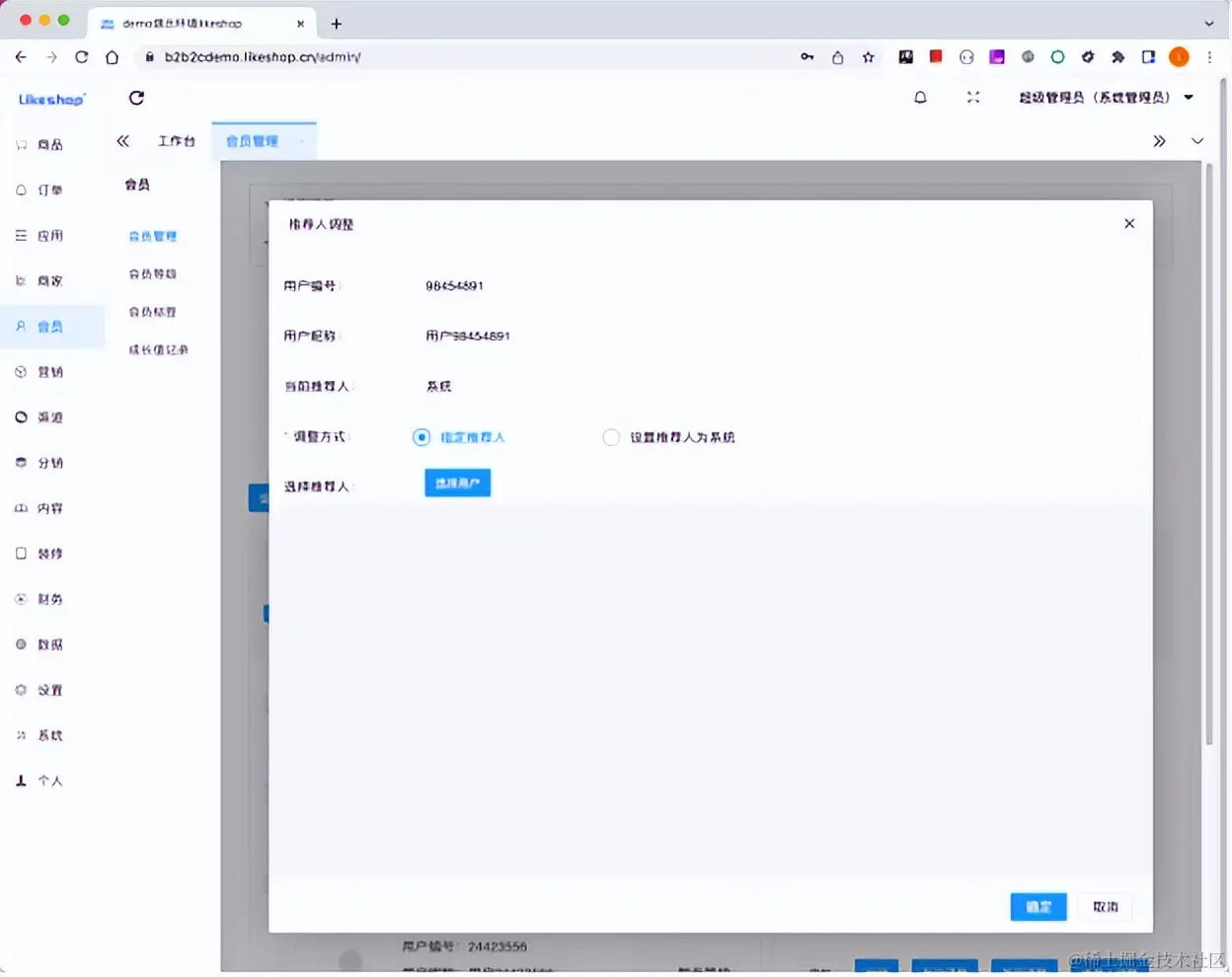 当设置推荐人为系统时,表示清空上级推荐人,以后该会员可以重新扫码绑定推荐人。