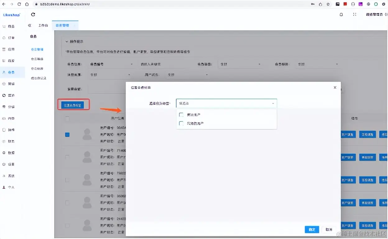 批量选择会员后,点击设置会员标签按钮,可以给会员打上个性化自定义的标签,方便运营人员根据标签精细化管理。