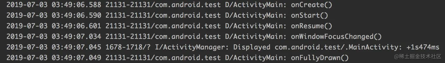 在 Android Studio Logcat 过滤关键字 “Displayed”,可以查看到如下日志: