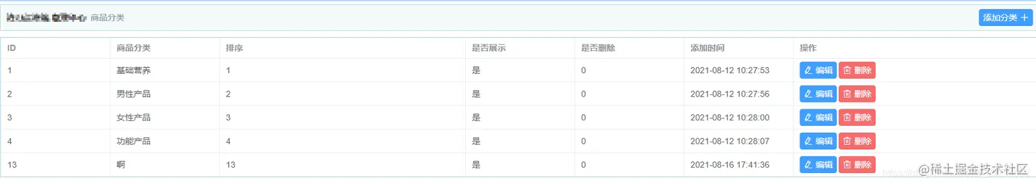 商品分类列表,添加分类,删除分类,编辑分类