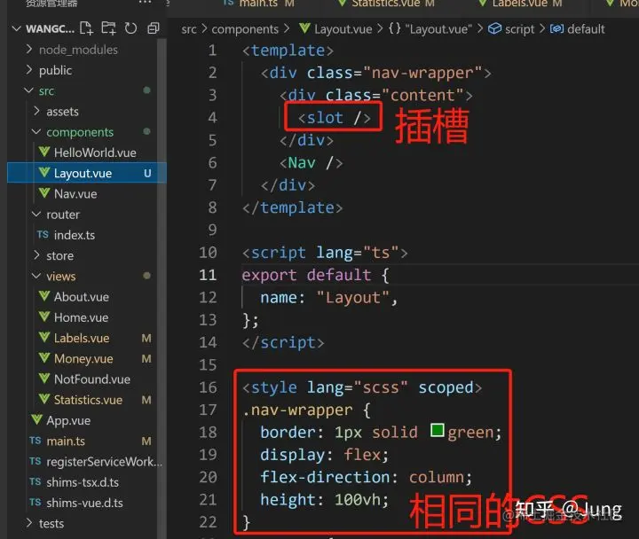 - 1、将相同的样式写到Layout.vue里,然后全局引入Layout组件