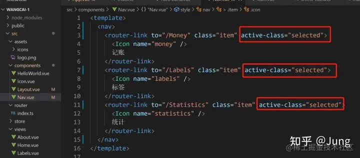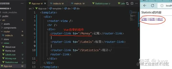 但是呢,比如404页面就不需要记账/标签/统计这几个标签,所以要优化:将包裹记账/标签/统计的这个div封装成一个组件Nav