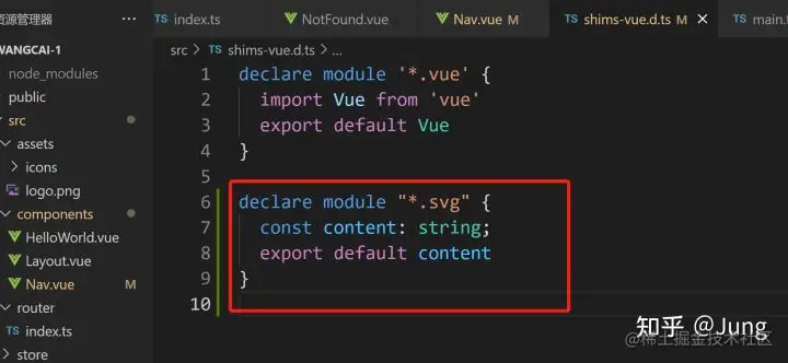 4、引入svg,方法参考:鱼丸:关于Vue typescript 引入svg的问题